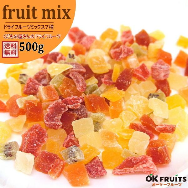 7種類のフルーツをダイスカット(10mm程度)して、日本で混ぜています。 人気のトロピカルドライフルーツが7種類ミックスされています。